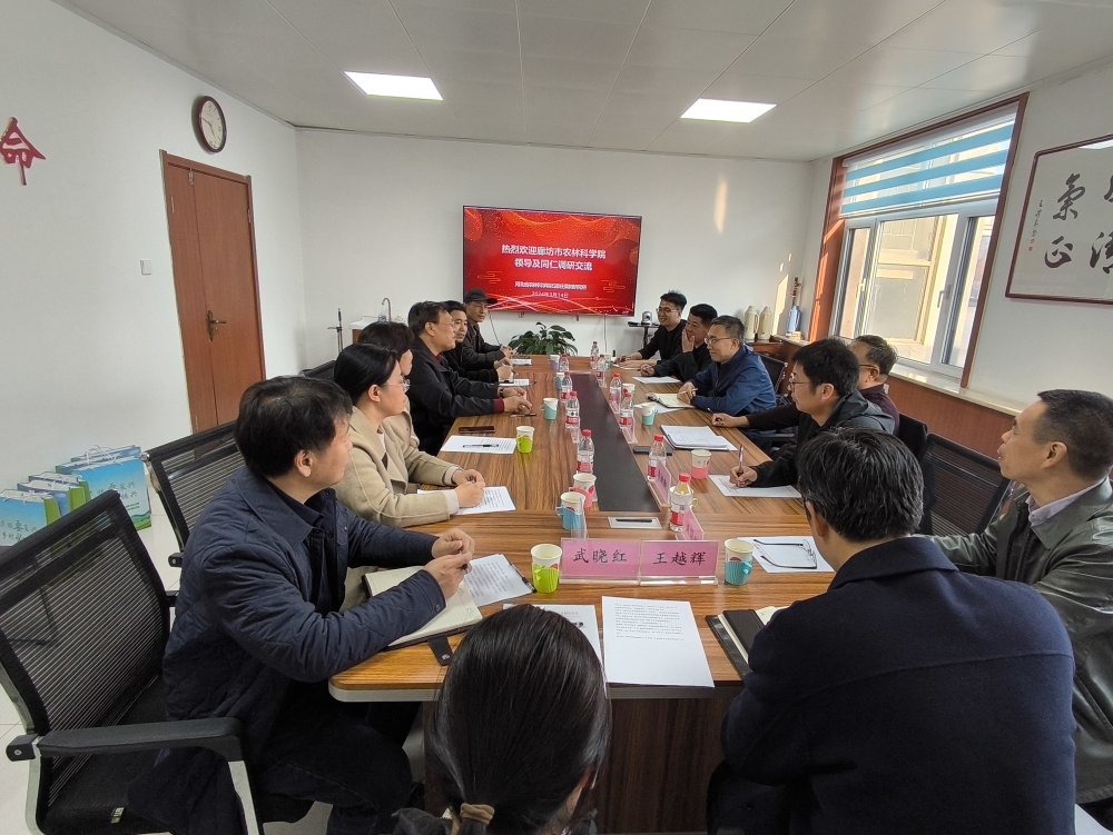 2024年3月14日,廊坊市农林科学院刘仰生院长、杜德玉副院长带领科研管理处、林果研究所和农产品加工研究所相关人员一行8人到石家庄果树研究所调研交流。