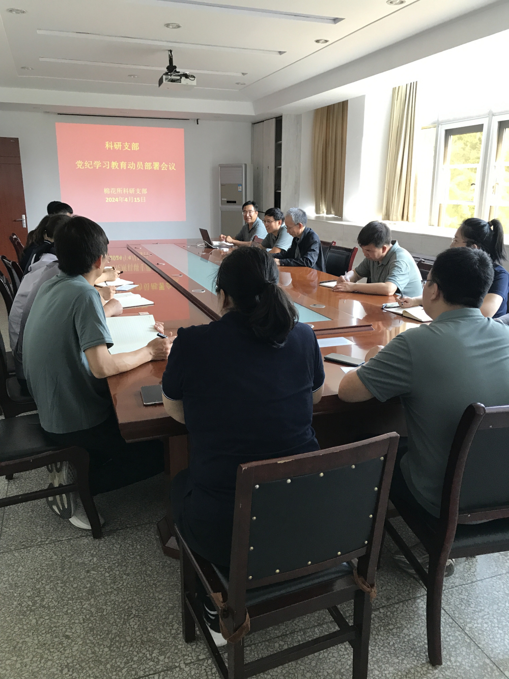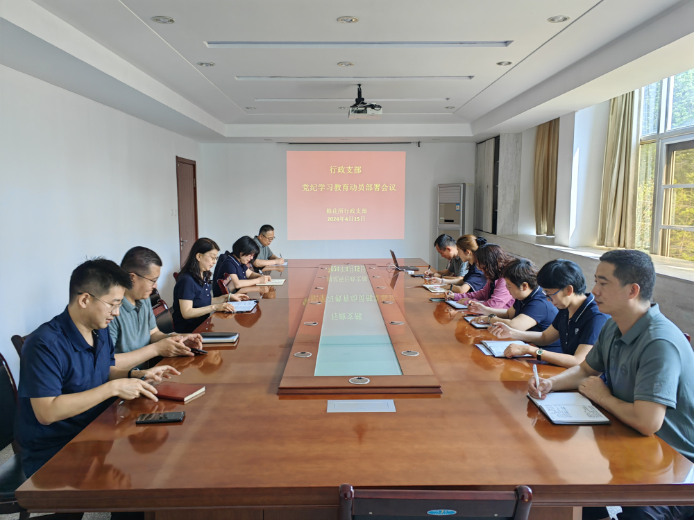 近日,棉花所召开总支、支部会议,对党纪学习教育进行动员部署推进,传达学习了院党组印发的《关于在全院开展党纪学习教育工作方案》及院党纪学习教育推进会精神,部署了总支、支部党纪学习教育相关工作。