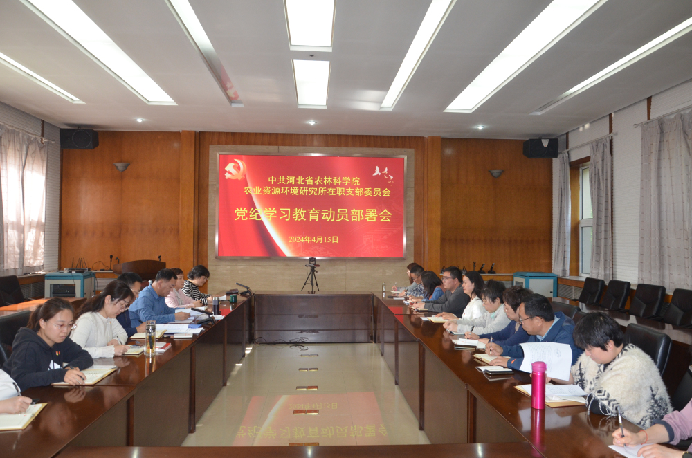 2024年4月15日下午,资环所总支、支部两级党组织分别召开会议,开展党纪学习教育动员部署。传达院党组《关于在全院开展党纪学习教育的工作方案》,研究部署资环所党纪学习教育工作,书记领学《中国共产党纪律处分条例》。党总支书记、所长侯升林主持会议。