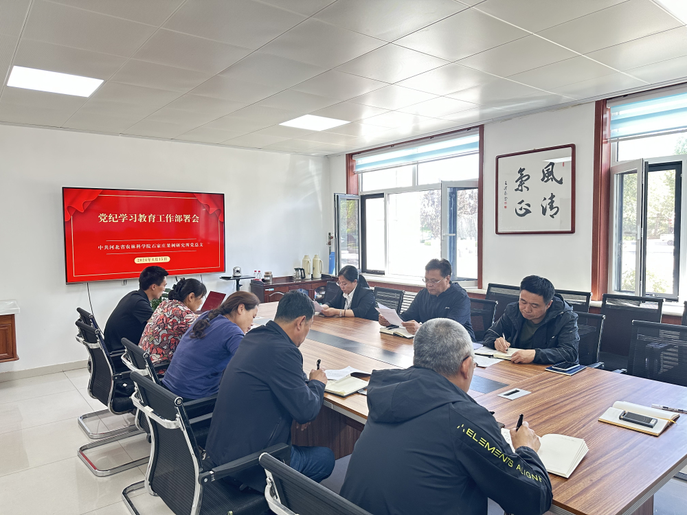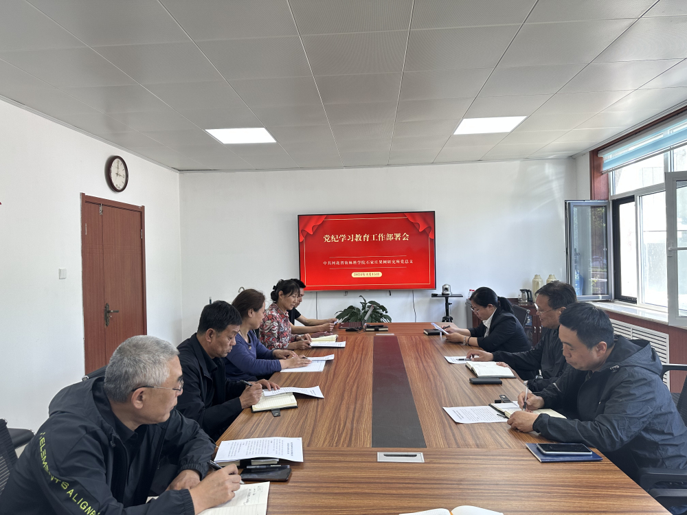2024年4月15日下午,石果所党总支召开党纪学习教育部署会,所班子成员、总支委员和和各支部书记参加。会议传达学习了院党组《关于在全院开展党纪学习教育的工作方案》,部署了石果所党纪学习教育工作。
