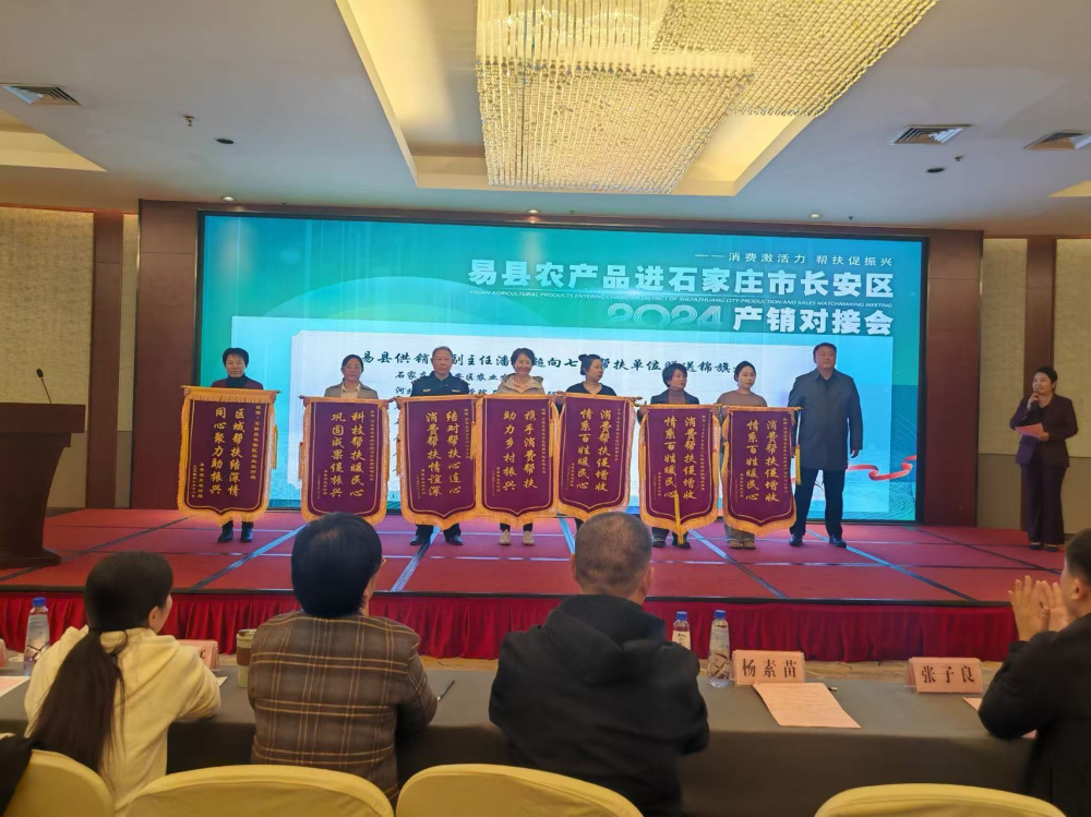 2024年10月28日上午,石家庄果树研究所副所长杨素苗受邀出席由长安区人民政府、易县人民政府联合举办的易县农产品进石家庄市长安区产销对接会。会上,易县文旅局、农业农村局、发改局等单位对易县旅游、招商引资、农业产业发展等进行了宣传,企业代表推介了苹果、柿子、板栗、花生等优质农产品。在答谢环节,易县农业农村局向石家庄果树研究所赠送了锦旗,对研究所给予的科技帮扶表示感谢。