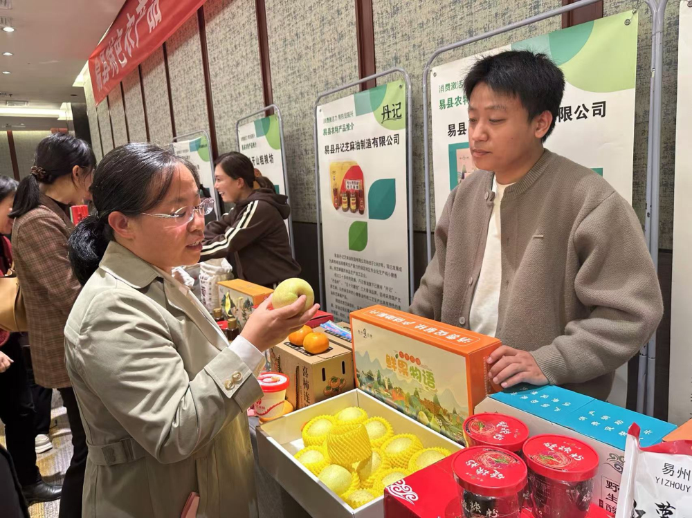 会后,杨素苗参观品鉴了展销的苹果、玉米、冰柿等易县特色农产品,与参展企业、种植户就果树栽培技术进行了探讨交流,并表示欢迎种植户到研究所参观交流,共同促进易县果业发展。