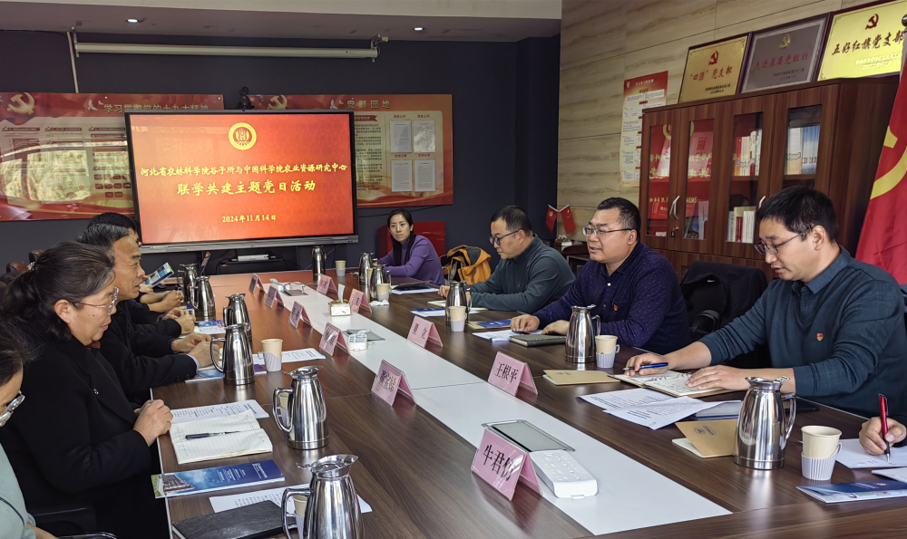 双方围绕如何通过党建与业务融合发展,积极落实党的二十届三中全会精神,凝心聚力促进农业高质量发展等方面进行了讨论。谷子所党总支书记董立首先介绍了谷子研究所党建工作的开展情况,及联学共建、一支部一品牌、一支一项、四强党支部建设等活动的做法和成效。中科院农业资源研究中心党支部书记刘小京介绍了中心党支部积极落实党的二十届三中全会精神,通过党建与业务融合发展,以农业生态学、盐碱地综合利用、分子育种等领域为重点,在确保国家粮食安全、水安全与生态安全,开展的相关工作及取得的成效。与会党员专家深入交流了学习习近平新时代中国特色社会主义思想和党的二十届三中全会关于体制改革和农业发展的重要论述的理解和感悟,并就科技创新与人才培养、项目申报与合作等方面进行了探讨。