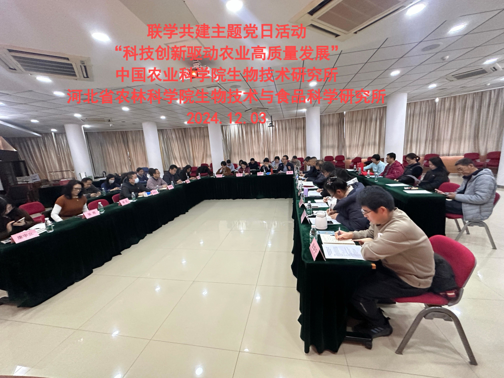 为深入学习党的二十届三中全会精神,贯彻习近平总书记关于发展“新质生产力”,推动高质量发展,努力实现高水平科技自立自强的重要指示精神,落实省委“对上联建”工作部署和院机关党委相关要求,生物技术与食品科学研究所党总支和第一党支部前往中国农业科学院生物技术研究所,与该所第二党支部、第十党支部联合开展“科技创新驱动农业高质量发展”主题党日活动,双方共40余人参加活动。