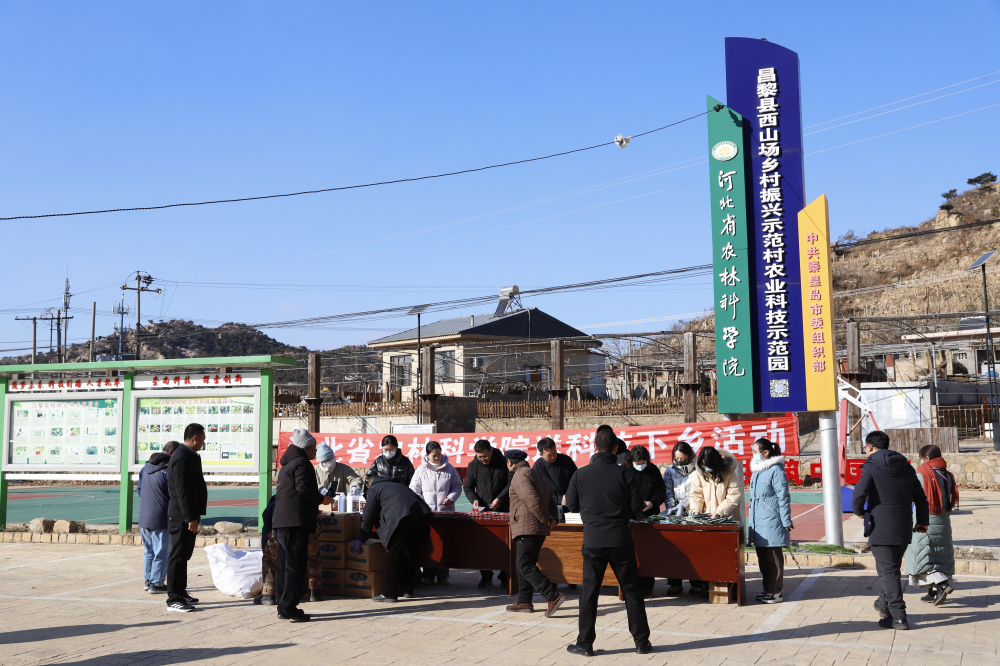 2024年12月17日,河北省第29届文化科技卫生“三下乡”集中服务活动在昌黎县举办。昌果所副所长李春敏带队在西山场村开展了送科技下乡活动。10余名科技专家在村委会广场为该村送去了价值2万余元的化肥、农药、工具及种植管理技术书籍和宣传资料等,并现场解答村民在葡萄生产过程中遇到的栽培管理及病虫害防治等实际问题,深受广大农民朋友欢迎,为推动当地农业产业健康发展注入了科技发展原动力。