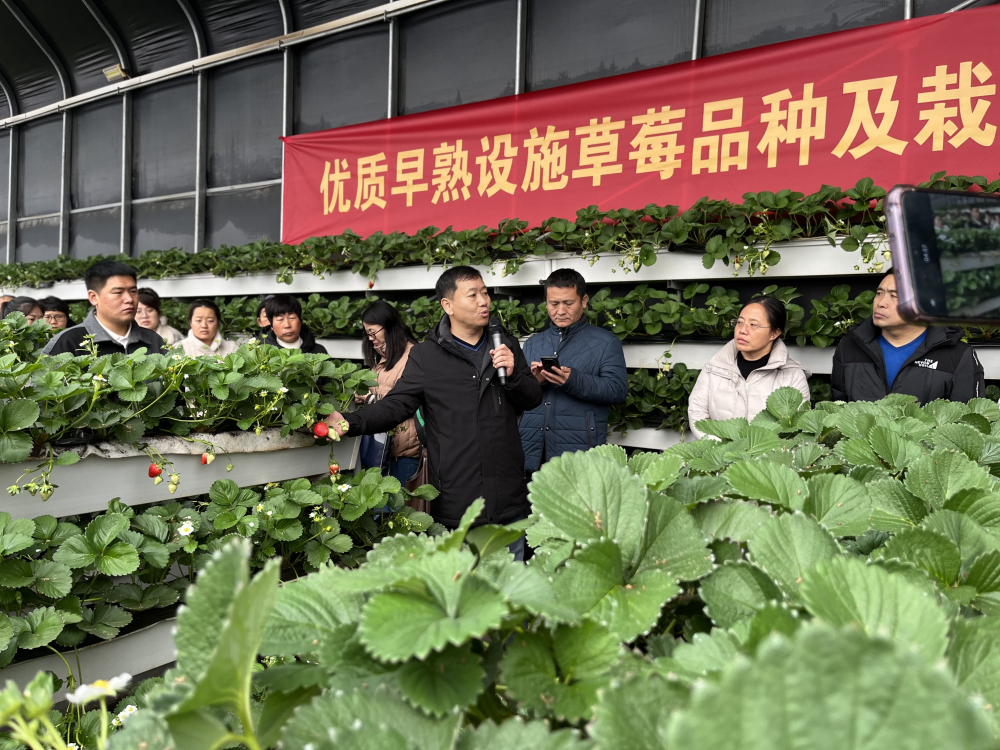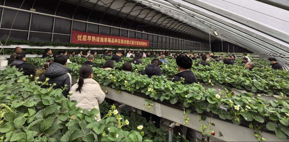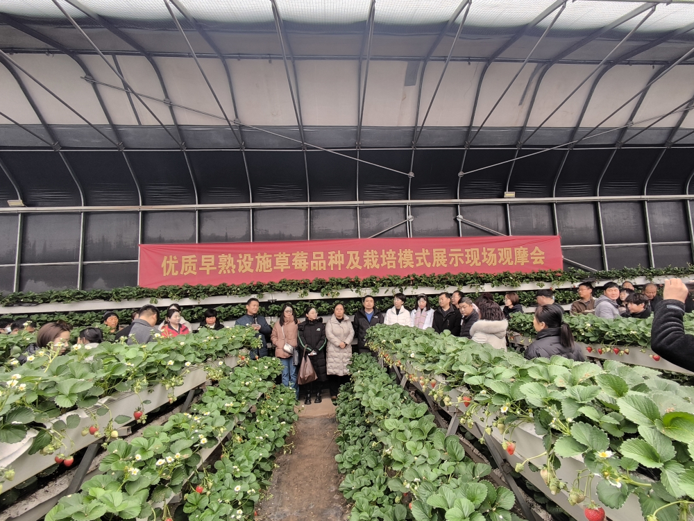 为进一步加快早熟设施草莓品种及栽培模式技术示范推广应用,提高草莓种植经济效益,促进草莓产业高质量发展,河北省农林科学院石家庄果树研究所联合石家庄市农业农村局,于2024年12月12日举办了优质早熟设施草莓品种及栽培模式展示现场观摩会。河北省农业农村厅特色产业处、石家庄市农业农村局、石家庄市各区县农业农村局相关领导,草莓生产、育苗、销售等企业、基地、合作社、种植大户代表,《燕赵农村报》等媒体记者及石家庄果树研究所领导班子及相关科技人员100余人参会。