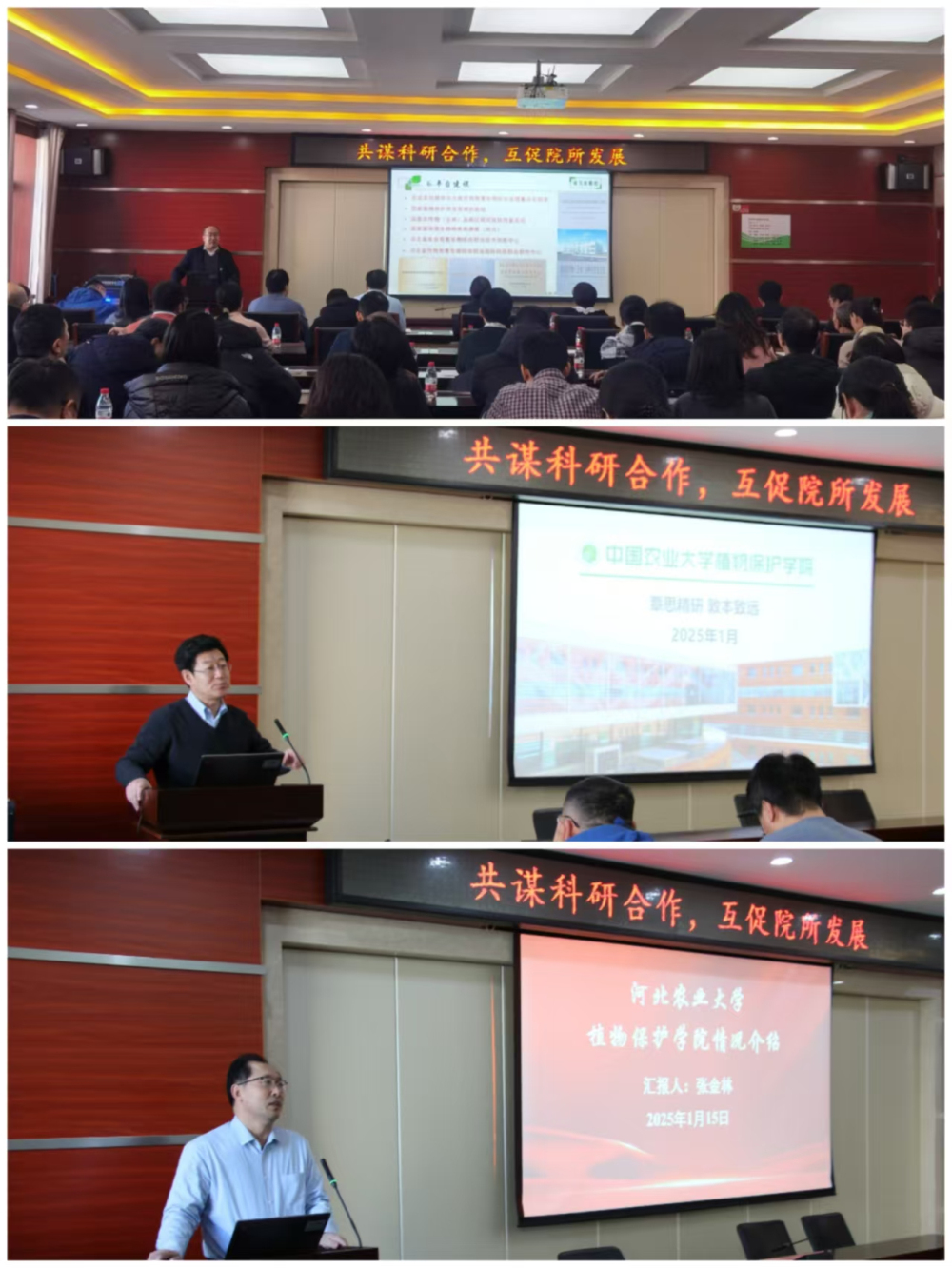 为更好促进党建与业务融合,促进科研事业发展,2025年1月15日,植保所与中国农业大学植保学院、河北农业大学植保学院开展主题为“共谋科研合作,互促院所发展”的联学共建活动。一所两院领导、专家80余人参加活动。