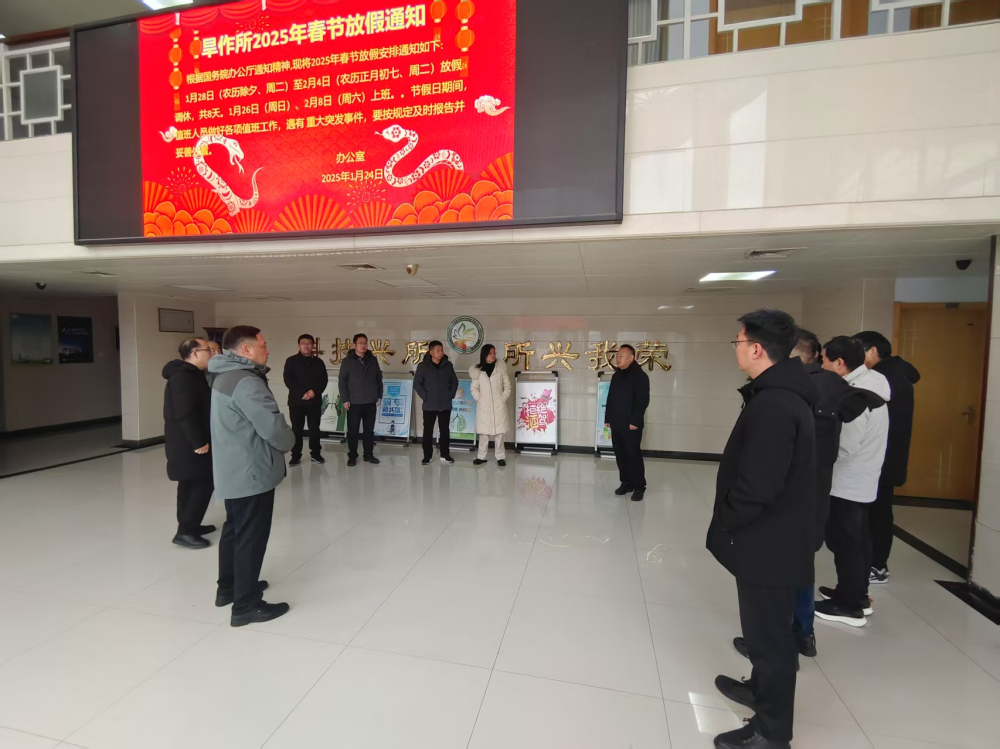 2025年1月26日上午,为切实加强安全生产工作,旱作所所长鲁关立、党总支书记李伟带领所中层干部,深入实验室、生防院区、实验站等重点区域开展全面安全生产检查,并现场签订安全生产责任状,同时督导上阶段安全生产整改情况,保障全体职工过一个平安祥和的春节。