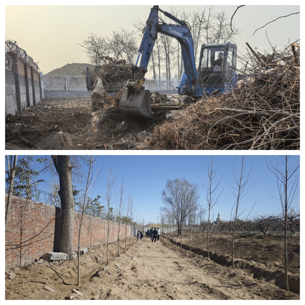 此次植树地点选在被建筑垃圾、生活垃圾、枯干树枝占据数年的研究所与省畜牧良种工作站界墙之内荒废地。工作人员在植树活动前期专门对此地进行了垃圾清理与土地平整工作。