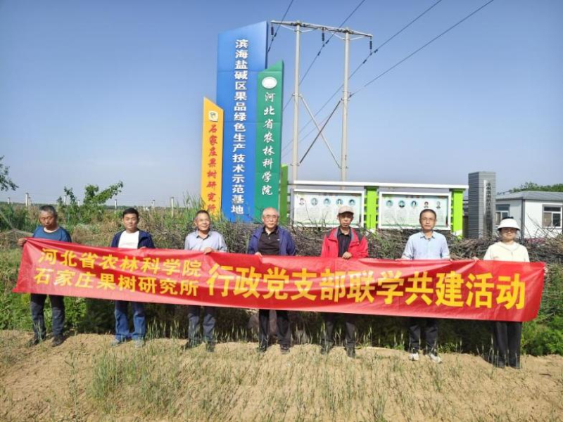 石家庄果树研究所积极贯彻落实习近平总书记关于盐碱地综合利用的重要讲话精神,在沧州中捷农场建立“滨海盐碱区果品绿色生产技术示范基地”,开展盐碱地综合改造利用相关工作。近日,为进一步发挥党建引领作用,推动党建与业务深度融合,石果所行政党支部与中共沧州临港中捷农业发展有限公司支部委员会开展“联学共建促发展,科技兴农惠民生”活动,石果所副所长宣立锋带队,行政党支部书记、党员代表参加。