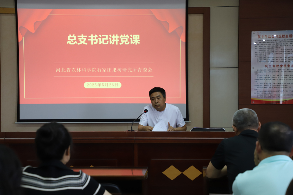为抓好年轻干部、关键岗位干部深入贯彻中央八项规定精神学习教育,2025年5月26日,石家庄果树研究所开展总支书记讲党课暨青年干部警示教育活动。