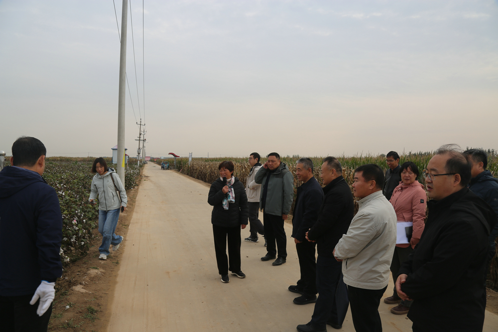 在旱作节水农业试验站,调研团队详细了解小麦品种试验的种植进展,实地察看玉米、棉花、谷子、牧草、油菜等作物的田间试验情况。调研过程中,刘超一行与旱作所科研人员围绕小麦区域试验实施细节、作物品种同质化破解路径、小麦适应性区划调整方向及科研成果转化落地等核心议题展开深入交流。刘超对旱作所承担的作物品种区域试验工作质量予以高度认可,建议旱作所进一步加大优良品种培育力度,力争推出更多突破性大品种,为保障粮食安全和促进农民增收贡献科技力量。