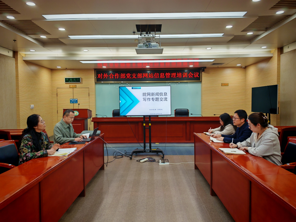 为认真学习贯彻习近平总书记关于意识形态工作的重要论述,落实院基层党组织书记、党务干部培训暨“四强”党支部建设观摩交流会精神,全面提升支部网络信息发布、审稿等规范化管理水平,2025年10月28日,对外合作部党支部举办网站信息管理培训会。会议邀请院机关党委高蒙龙同志进行专题培训。