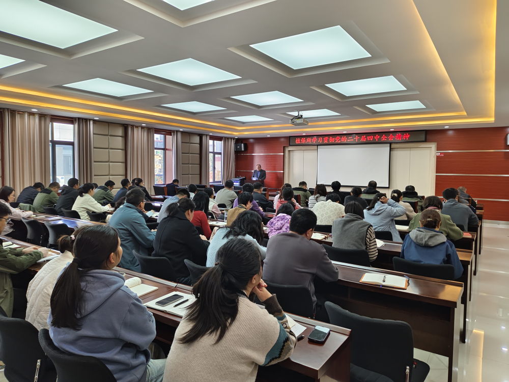 2025年11月14日,植保所召开学习贯彻党的二十届四中全会精神宣讲会,全体党员干部参加大会,党总支书记、所长郭庆港作宣讲报告。